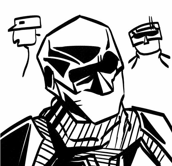 Lethal assassin, “Superhero”, silent and Loyal to Vought. He never questions his orders and has a traumatic past. Earving managed to join the superhero team Payback at the age of almost 17, starting his career as Black Noir.Noir lost his ability to think properly and speak after Soldier Boy violently beat him during a mission. Noir was left horrifically disfigured, rendering him with the same mental age as a 7 year old child. This damage to his brain also caused Noir to experience constant delusions of the cartoon mascots of Buster Beaver's Pizza Restaurant, whom he imagines as his best friends.Despite his brutality, Noir displayed a great deal of solicitude for innocent lives (Animals and Children) and he has a profound sensitive side to himself, but doesn't hesitate to set it aside to fulfill his duties as a the Second Best Member of The Seven and a Corporate Superhero for Vought International.Noir, deep down, is a traumatized and scared little boy, feeling ashamed about his past with Soldier Boy due to the abuse he inflicted on Noir, to the point he chose to run and hide leaving behind Vought and Homelander. He developed an emotional armor to keep himself safe from the world. He usually doesn't open emotionally with anyone. Most people don't know what's going on with him and wonder what's behind the mask he wears literally and symbolically.